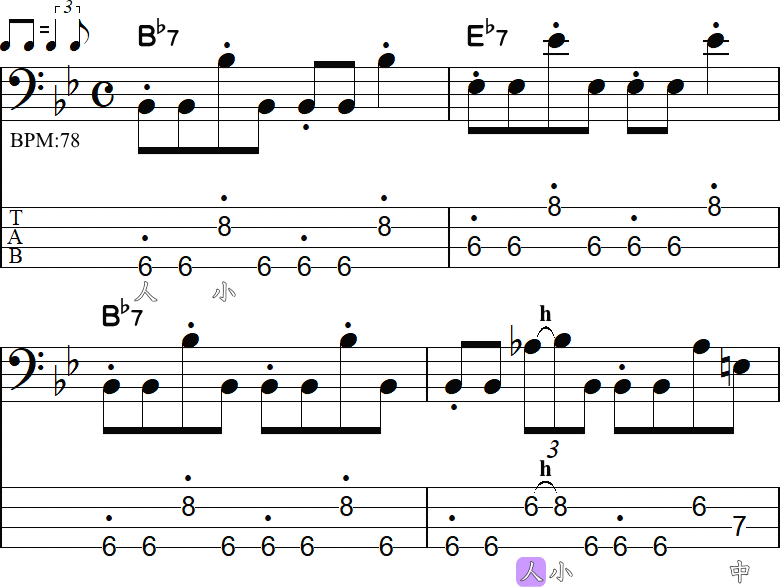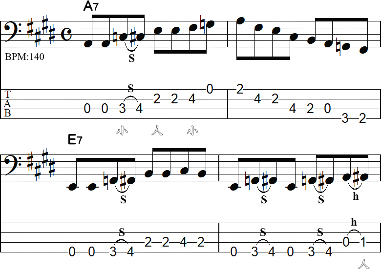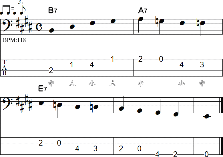 ブルースという独立した音楽はあるものの、ポップス・ロック・ジャズなど、色んなジャンルの音楽に、ブルースを融合させている、という事も多いです。ここでもそれらの音楽ジャンルで、昔ながらに見られる、ブルースのベースラインを中心に、練習していきましょう。