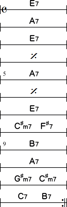 ジャズではブルースを土台にした、楽曲も非常に多いです。ジャズブルースの場合、シンプルなブルースのコード進行、という事はほとんどなく、やはりアレンジされます。
