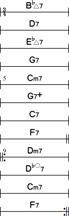 スティービー・ワンダーの「isn't she lovely」のコード進行を、少しアレンジしたものです。ポピュラー音楽もしばしば、ジャズにアレンジして、演奏される事があります。