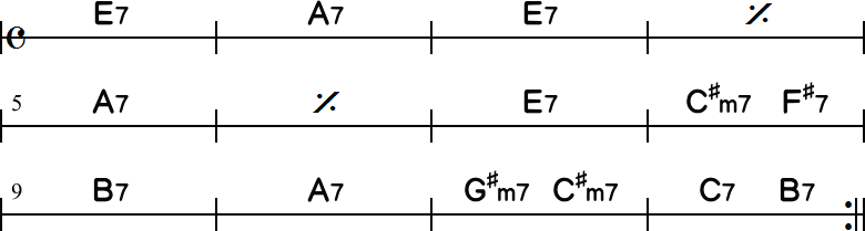 ジャズではブルースを土台にした、楽曲も非常に多いです。ジャズブルースの場合、シンプルなブルースのコード進行、という事はほとんどなく、やはりアレンジされます。