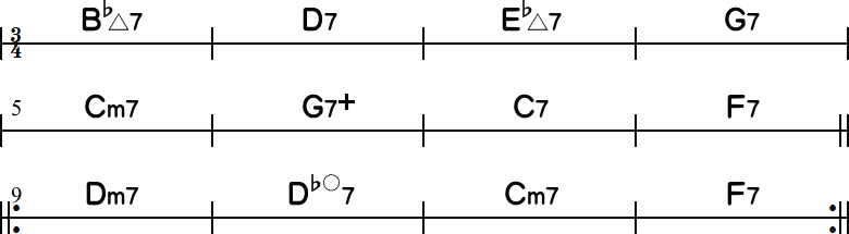 スティービー・ワンダーの「isn't she lovely」のコード進行を、少しアレンジしたものです。ポピュラー音楽もしばしば、ジャズにアレンジして、演奏される事があります。